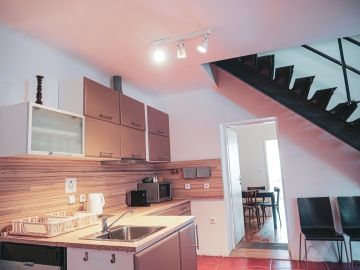 1 apartmán s vlastní koupelnou, toaletou a kuchyňkou s posezením